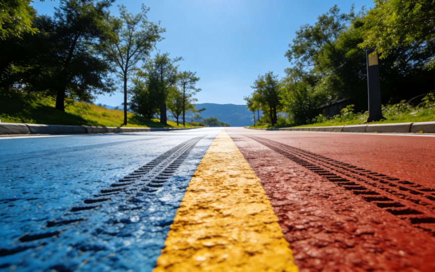 彩色沥青路面是指脱色沥青与各种颜色色粉、石料、添加剂等材料在特定的条件下集中拌合,形成各种颜色的沥青混合料,再经过摊铺、碾压而形成具有一定强度和路用性能的彩色沥青混凝土路面。路面的颜色可根据道路景观要求进行设计确定。
